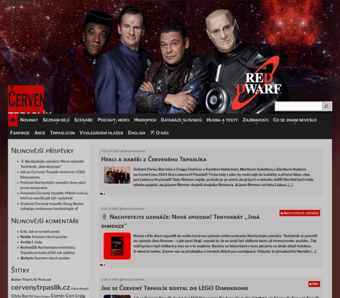 Naše současná doména navazuje na historii původních stránek cervenytrpaslik.czcervenytrpaslik.4fan.cz, které tvořily české fanouškovské srdce celé generace fanoušků, techniků, hologramů a kočičích elegánů.