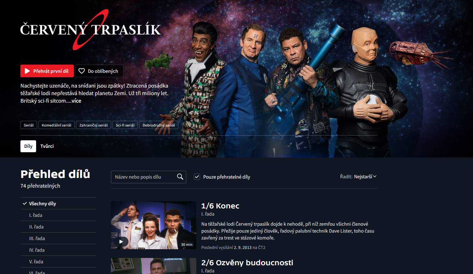 Právě dnes se na platformě iVysílání České televize objevily kompletně všechny epizody kultovního britského sitcomu. Pro fanoušky to znamená jediné: můžete si pustit všechna dobrodružství od „Konce“ až po ty nejnovější řady, a to v legendárním českém dabingu, který i samotný představitel Krytona, Robert Llewellyn, označil za jeden z nejlepších na světě. Sledování je nyní zcela legální a dostupné online pro každého, kdo chce znovu prožít osudy posledního žijícího člověka a jeho bizarních společníků.